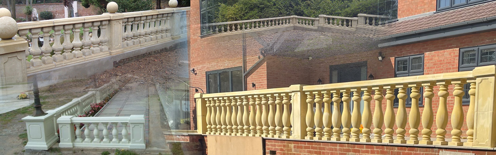 Moulded and crafted in our factory in Bedfordshire, this balustrade and suitable associated pedestals represents exceptional value. All products are finished by hand by our experienced manufacturing team. Two sizes and colours are available. The larger size is suitable for balconies and raised terraces, with steel rod reinforcement running throughout the balusters for extra stability and regulation.